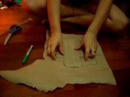 - Risque sobre papelão o molde,recorte e risque sobre o tecido do cueiro por 3x,corte novamente o tecido conforme o molde;